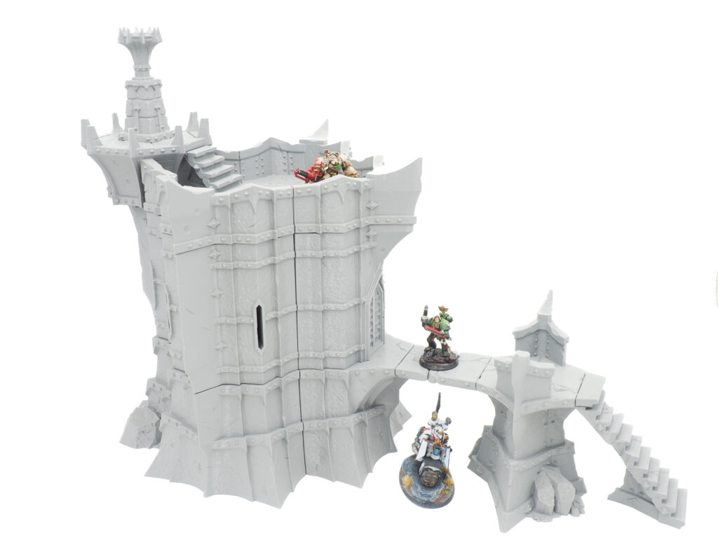 Highly modular like all parts designed by Dark Fantastic Mills but in this listing we provided it with the single Beacon Tower or the full Blood Bailey with the Viewing Tower and the Dragon Perch.