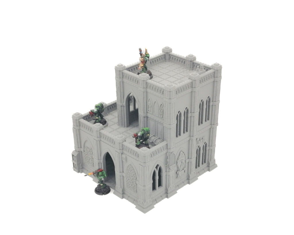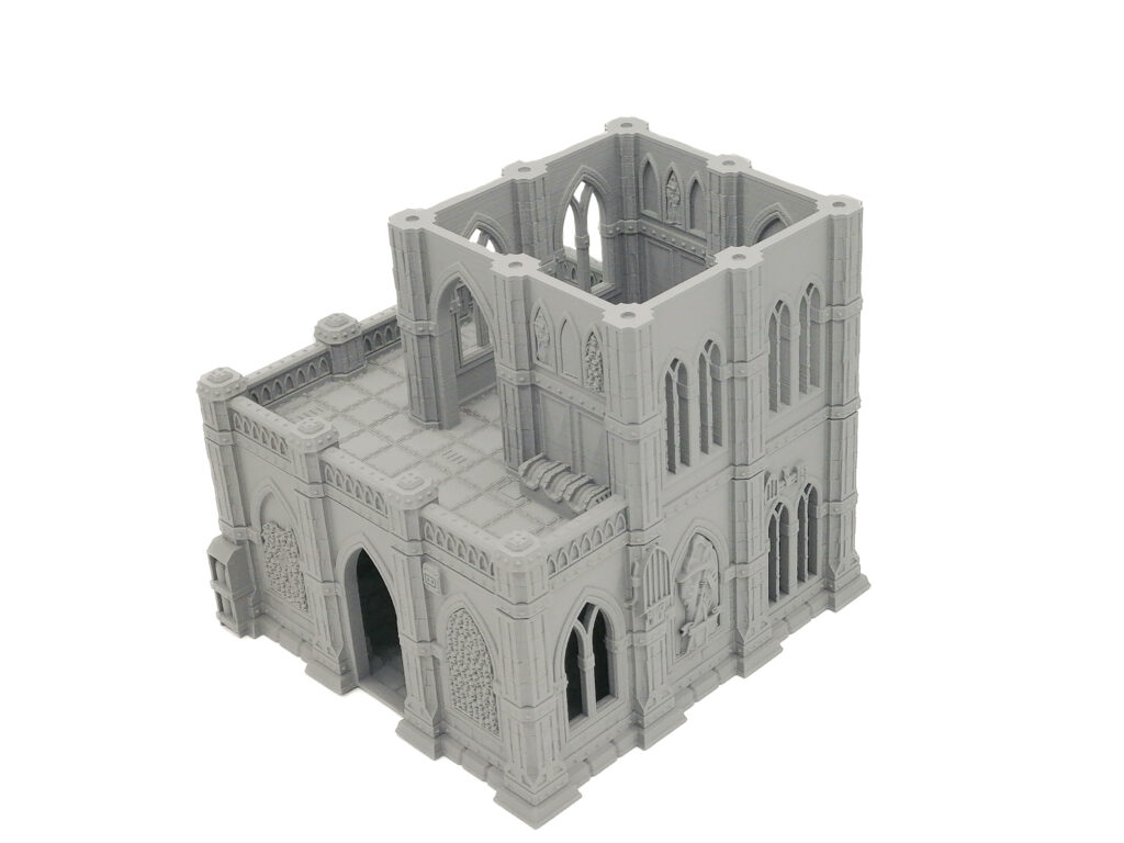 This is a 3 floored gothic themed house designed by Terrain4Print and is part of the Domina Ferrum set. As usual this dense model is another thematic and detailed variation of the gothic scifi range and is also available ruined. Comes with a random selection of optional reliefs.