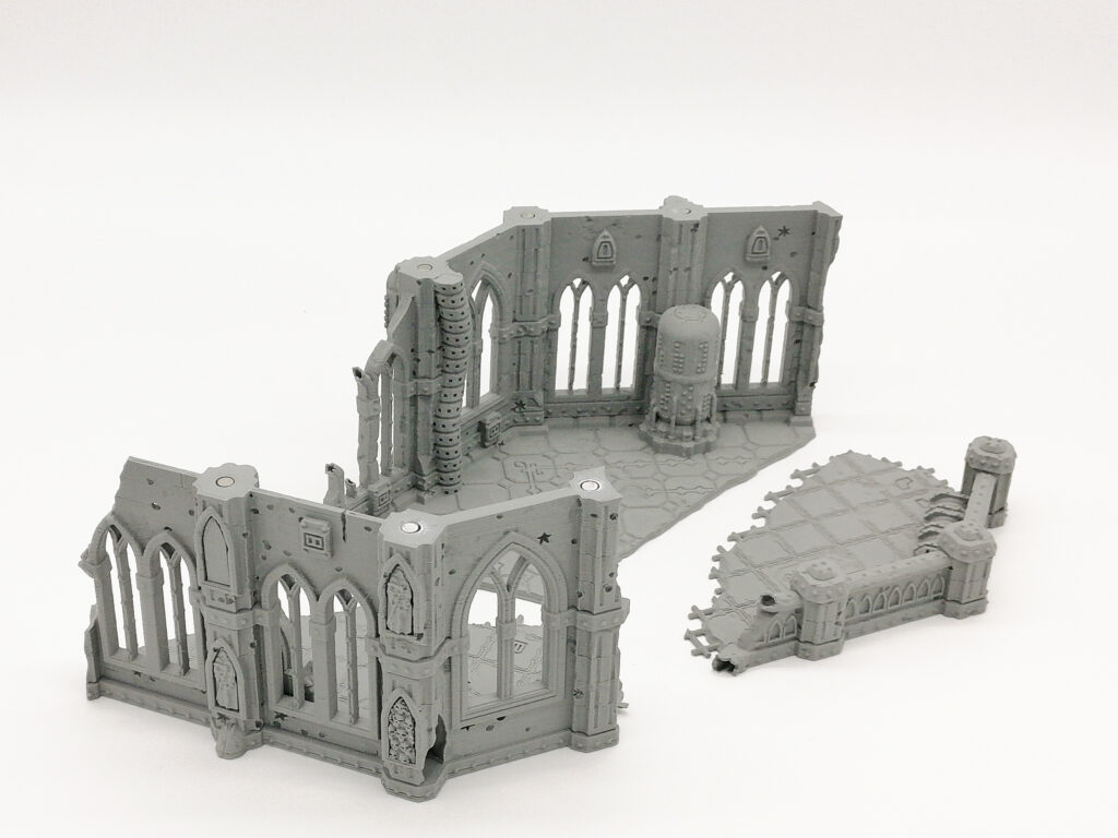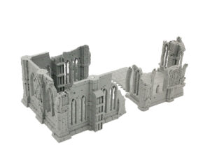 This is a 7 piece gothic themed ruined house designed by Terrain4Printand is part of the Domina Ferrum set. This new model range is the core component of the gothic themed scifi ruins and is available in many variations. This pre selected bundle of the ruin variations showcases an immersive and modular terrain set welcome for any scifi tabletop wargaming board.
