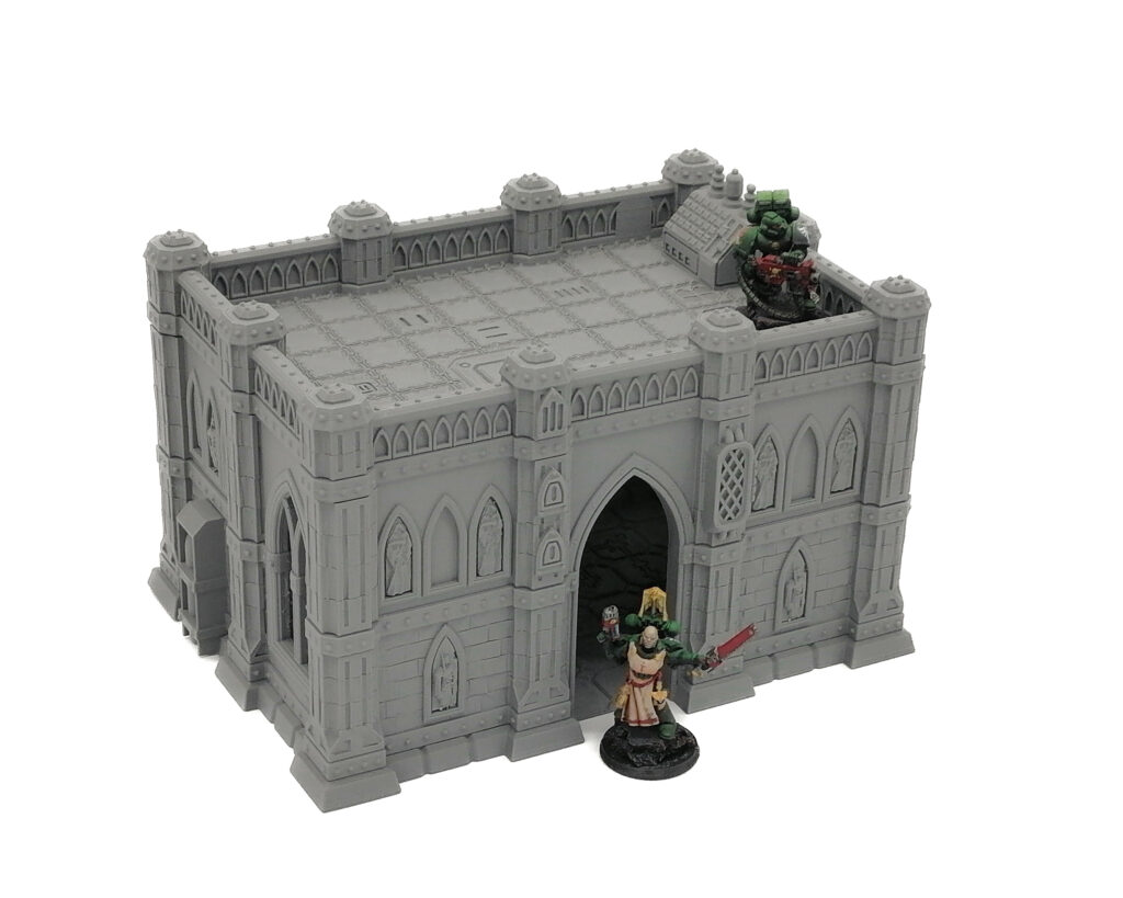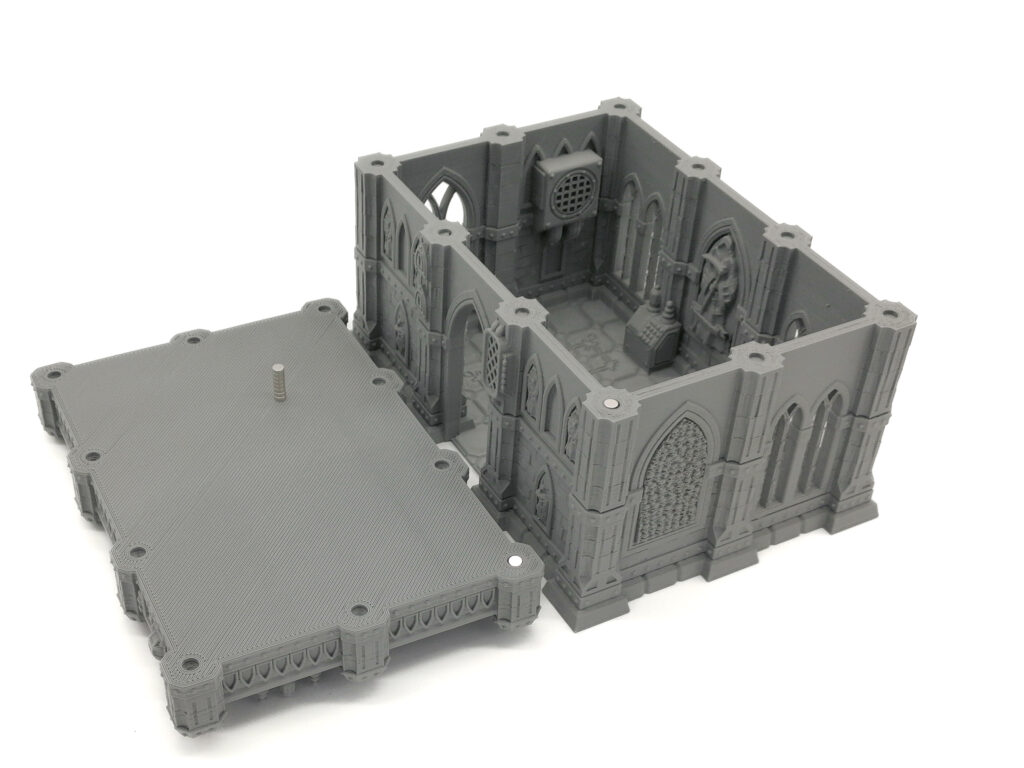 This is a 2 piece gothic themed small house by Terrain4Print is a extra to the Domina Ferrum set and another example of our Gothic themed terrain range.