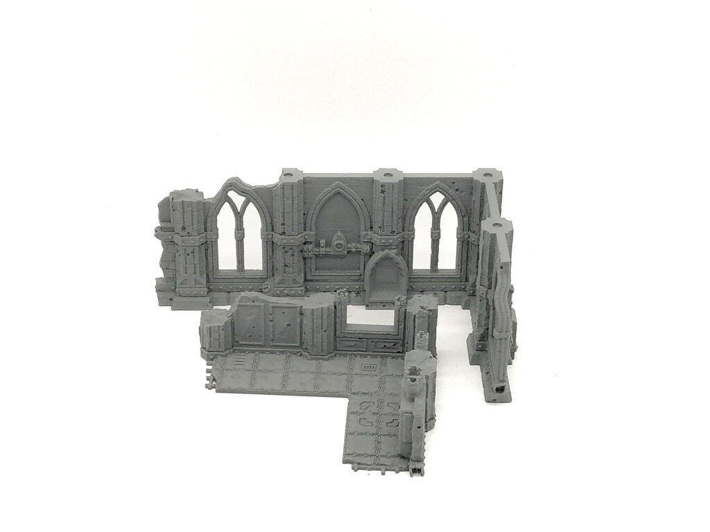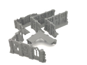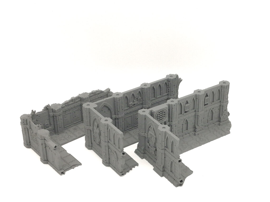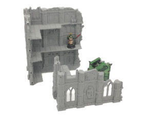 This is a 2 piece gothic themed WTC standard dimensions tournament set designed by Terrain4Print and is part of the Domina Ferrum set stretch goal list. This is designed to be legal on any current WTC standard tournament match play table as the three story and two story building components respectively. Modular for easy transportation and held together by 5x2mm magnets.