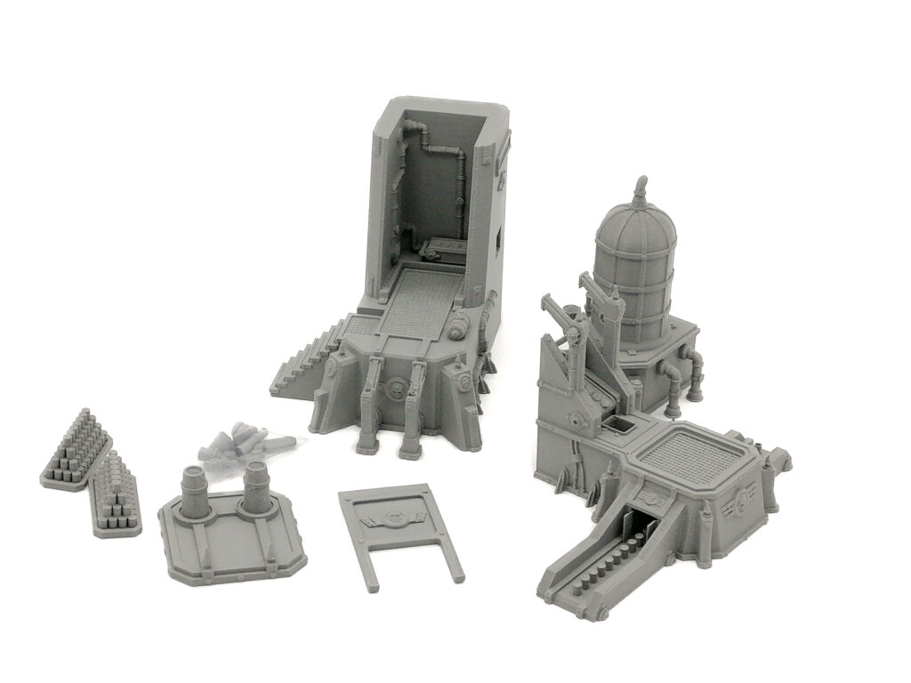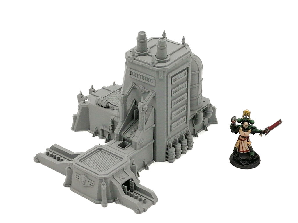 A Grimdark multi part factory (Cannery) composed of 6 main pieces and numerous internal details. Designed as suitable for any Sci-Fi tabletop game.