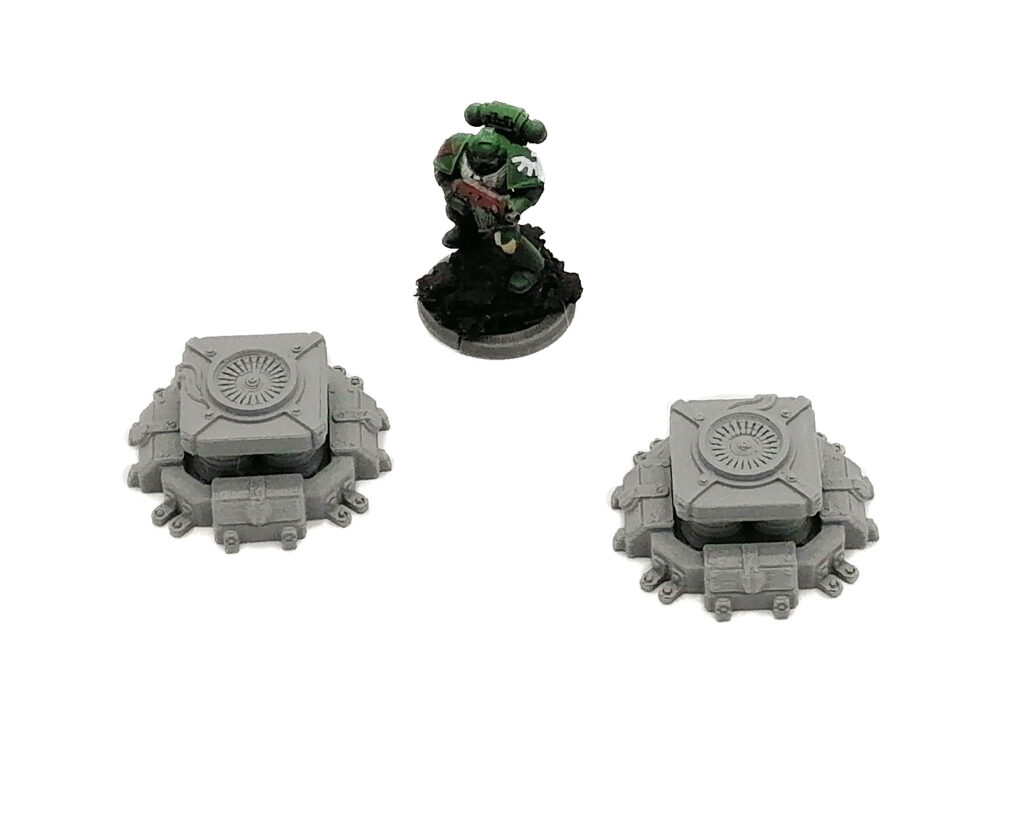2 Grimdark Slag Depot objective markers or scatter terrain inspired by a popular RTS game. This model used to mark the locations of slag pits for thermal power generators.