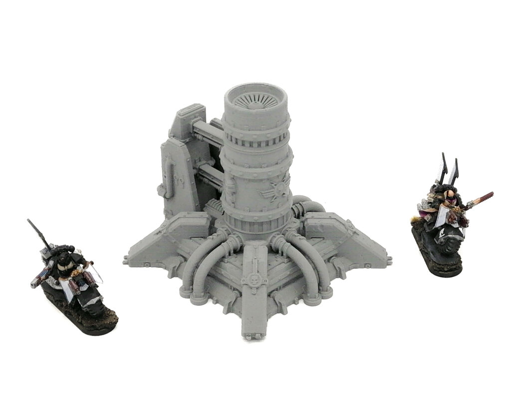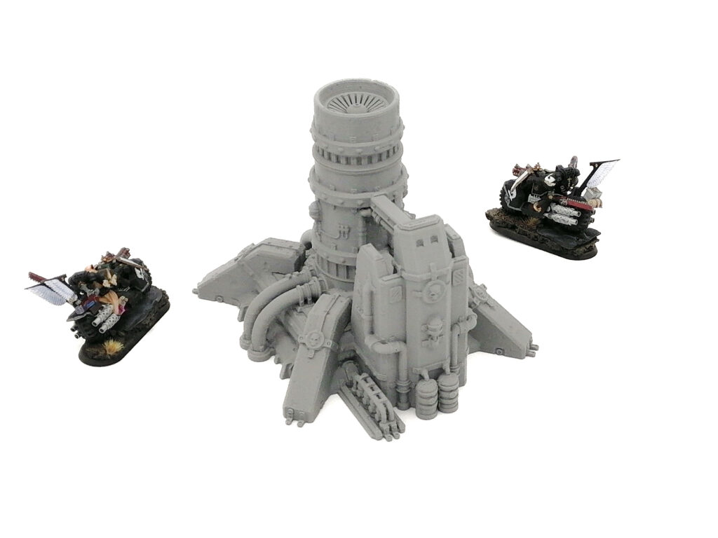 The Grimdark Thermo Plasma Generator building is inspired by the popular game Dawn of war. A thematic energy generator that was once fiercely fought over, and can no be again.