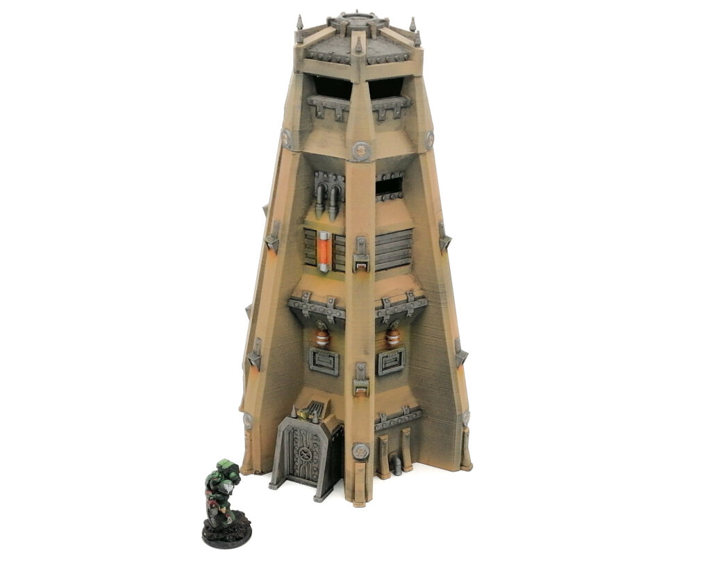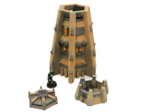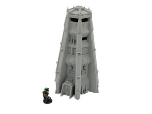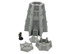 A multi part large armoured watchtower with two levels of usable interior on the top floors. Designed as suitable for any Sci-Fi tabletop game.