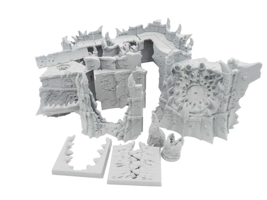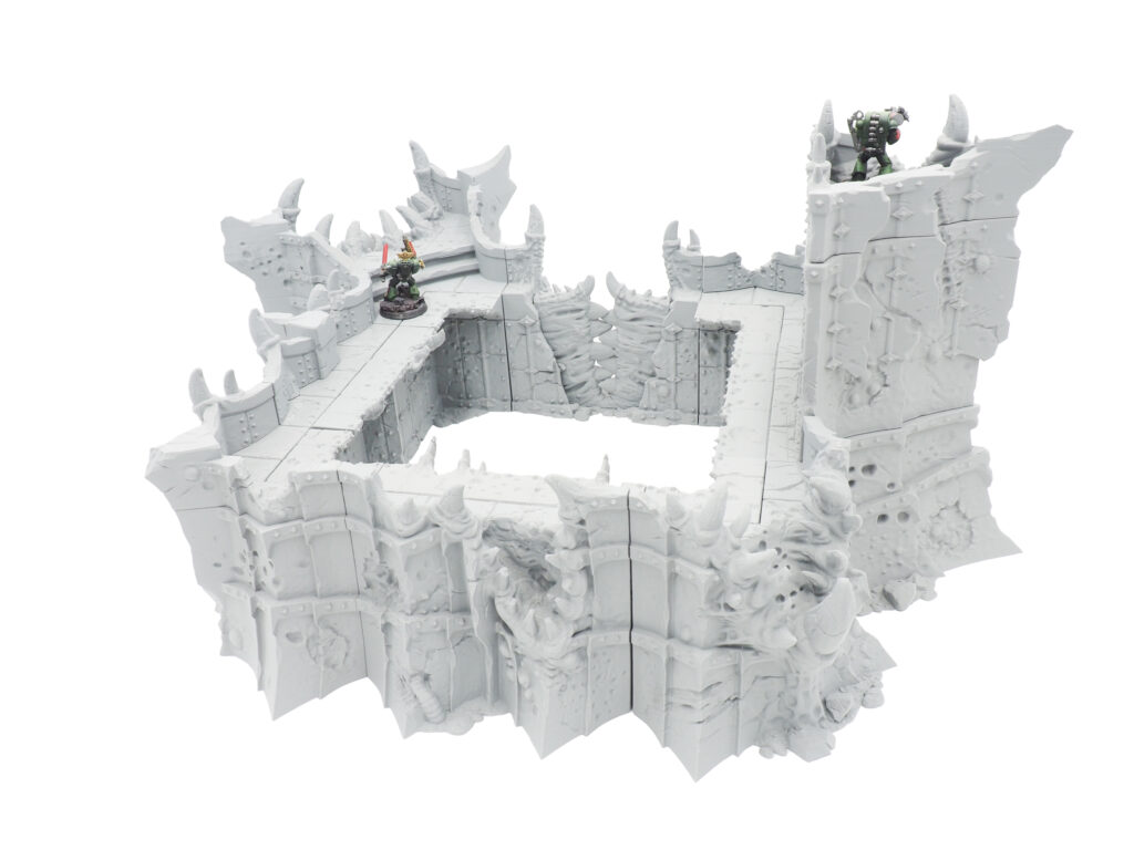 The Chaos citadel terrain set is ideal for many tabletop gaming settings. Highly modular, with a working gates and custom options.