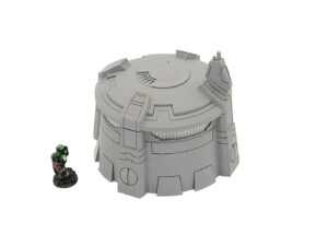 The Tau Bunker is a Tau themed standing watch tower structure. Consisting of 2 main parts it comes with a 2 variations of option transparent force shield inserts. Perfect to add to any Tau themed table top. Part of the United Frontier set.