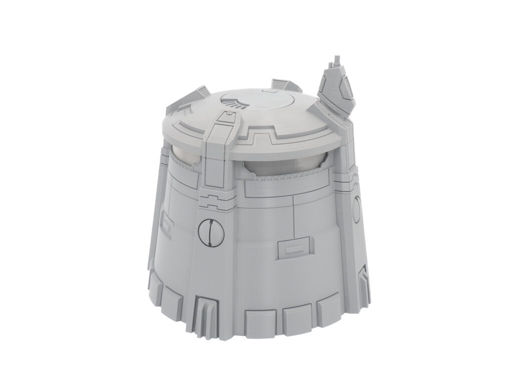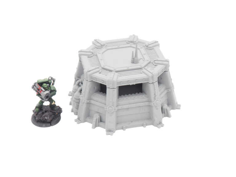 The Tau Heavy Bunker is the larger Tau themed standing watch tower structure of the united frontier set. Consisting of 6 main parts it comes with a 2 variations of optional transparent force shield inserts. Perfect to add to any Tau themed table top. Part of the United Frontier set.